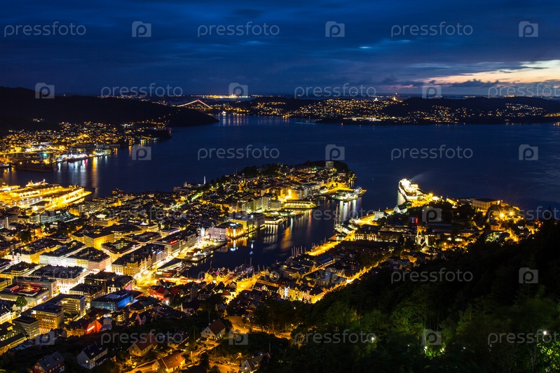 Ночной Берген, Норвегия