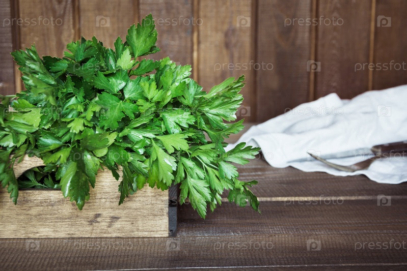Свежая зелень петрушки в лотке