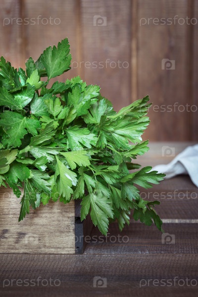 Свежая зелень петрушки в лотке
