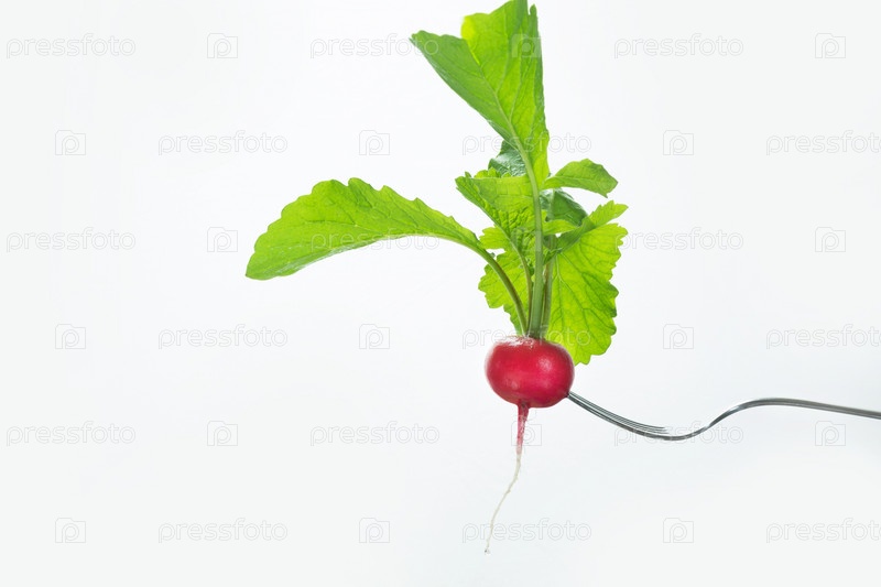 Спелый красный редис на вилке