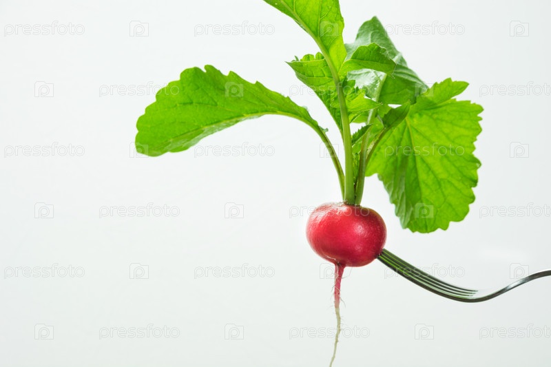 Спелый красный редис на вилке