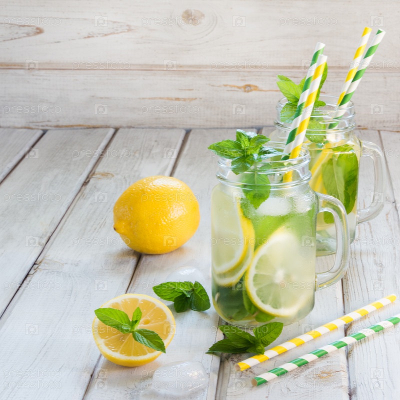 Летний коктейль с лимоном, мятой и льдом