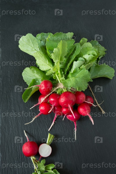 Красный редис с листьями