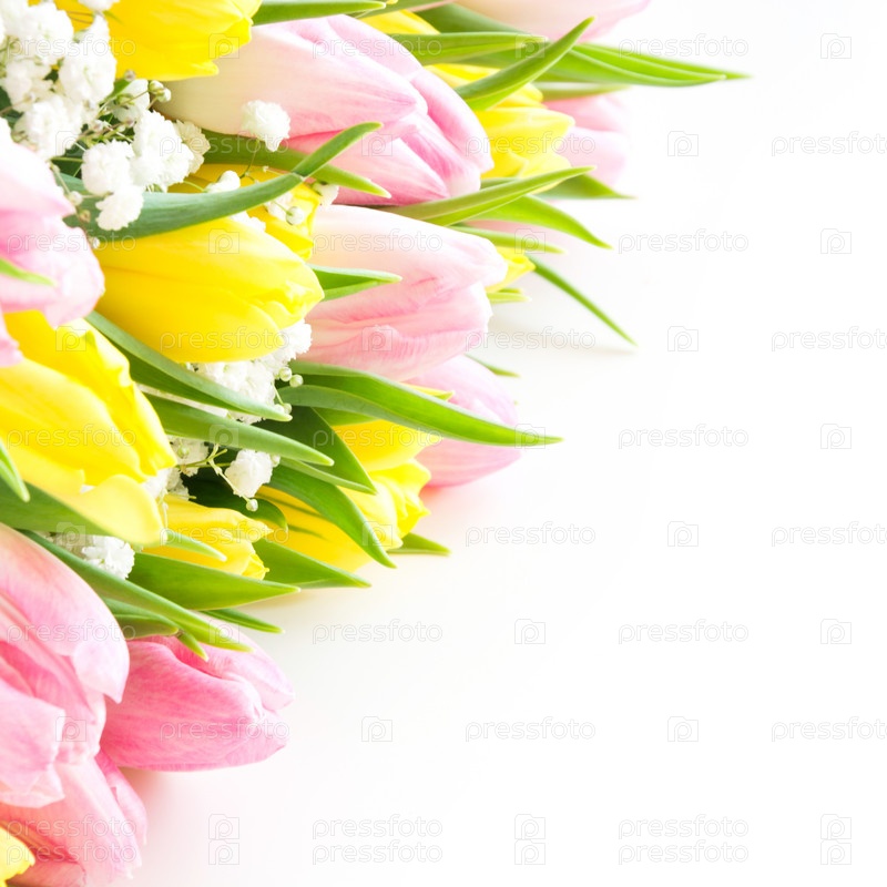 Букет из розовых тюльпанов на белом фоне