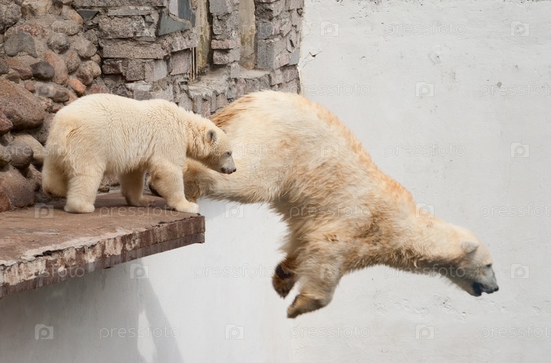 Белая медведица, ursus maritimus, с медвежонком
