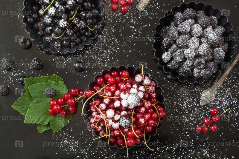 Свежая красная и черная смородина и ежевика