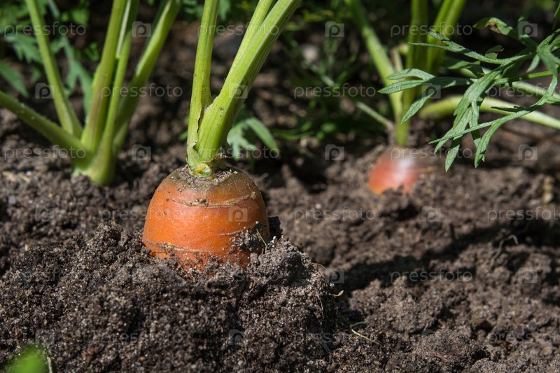 Сырая морковь на грядке