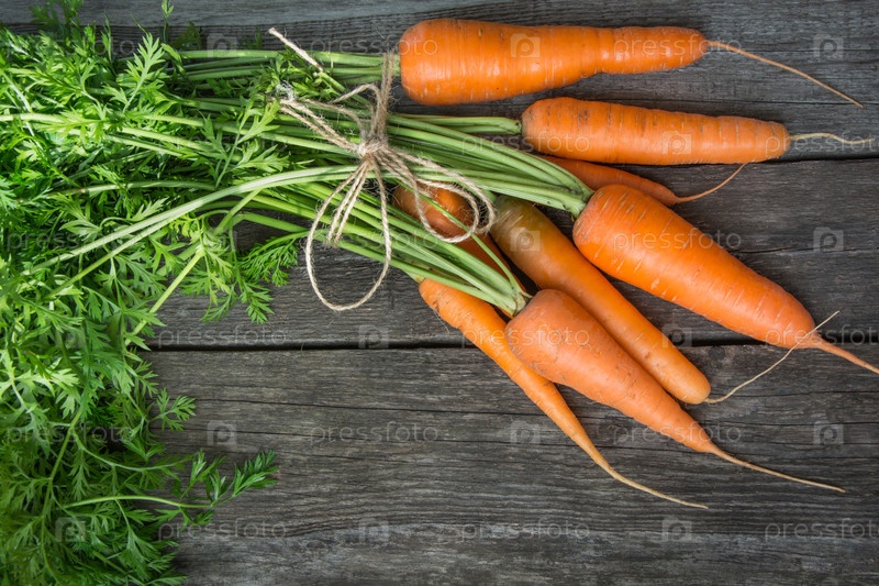 Свежая морковь с зелеными верхушками