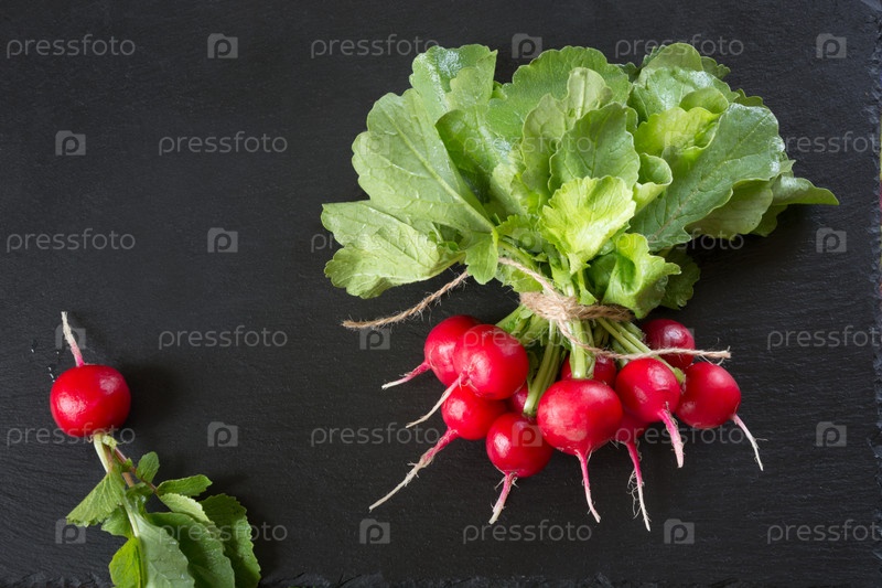 Красный редис с листьями
