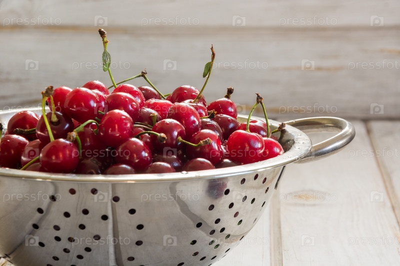 Металлический дуршлаг полный вишни
