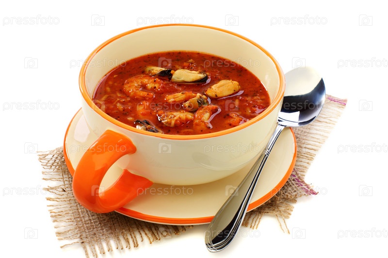 Суп с морепродуктами и помидорами