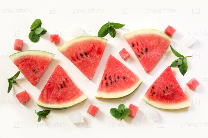 Ломтики арбуза, мята и лед