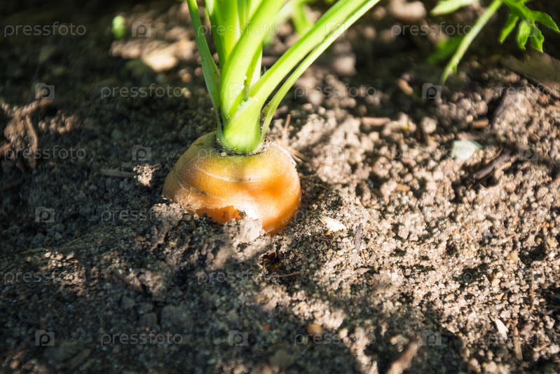 Сырая морковь на грядке