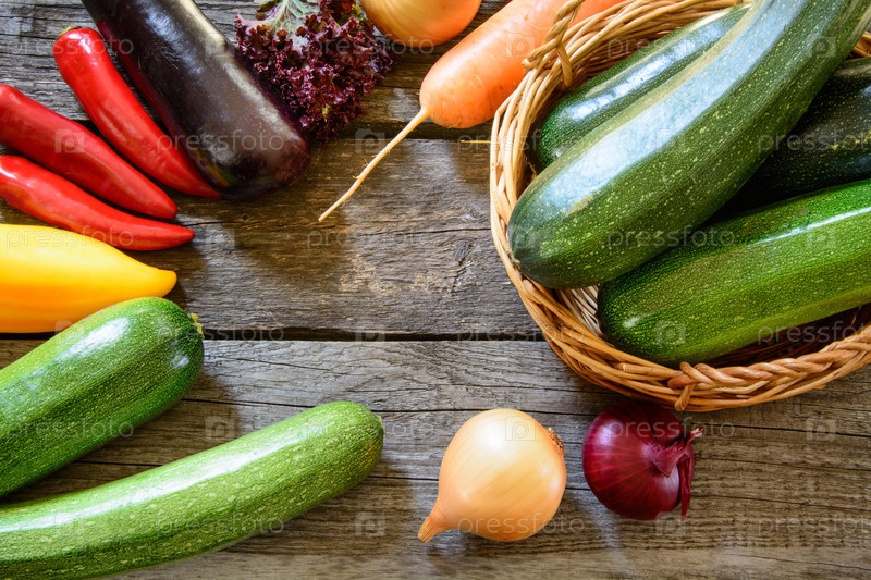Цуккини в плетеной корзине с овощами