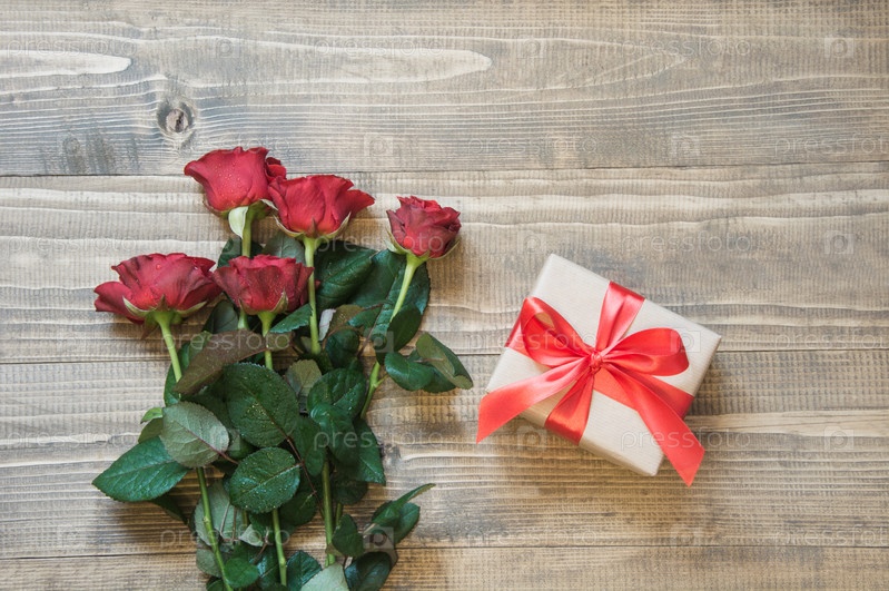 Букет красных роз с подарком