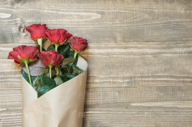 Букет красных роз, завернутый в бумагу