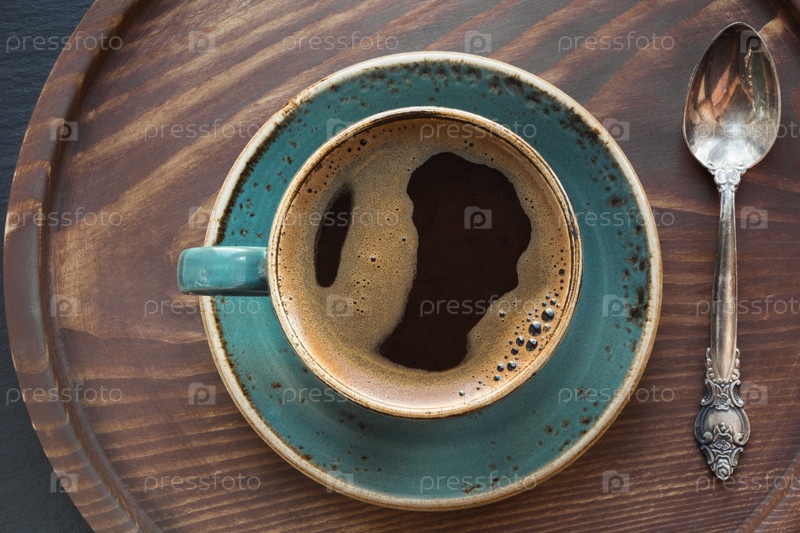 Чашка черного кофе с кофе ложкой