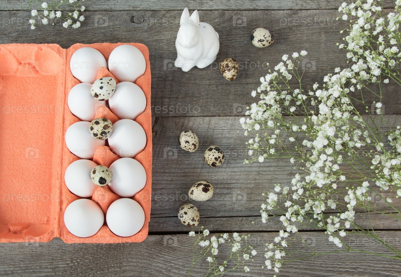 Коробка белых яиц с пасхальным декором