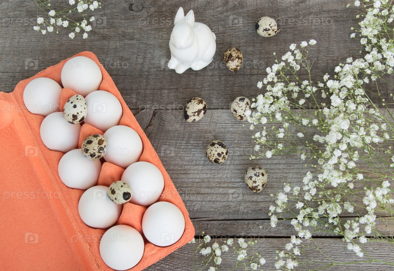 Коробка белых яиц с пасхальным декором