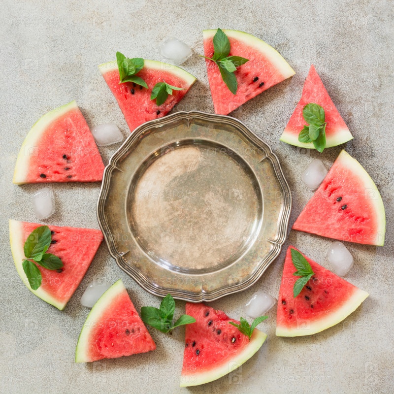 Арбуз нарезанный с мятой