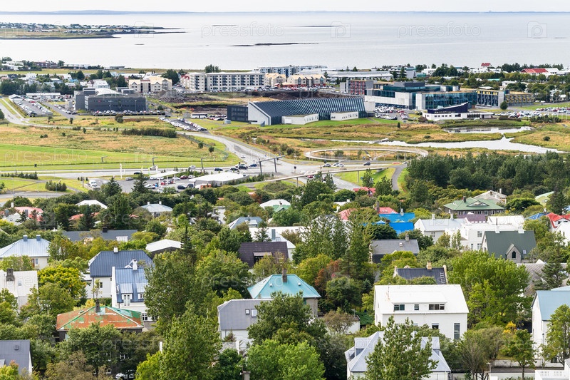 Город Рейкьявик и побережье Атлантического океана