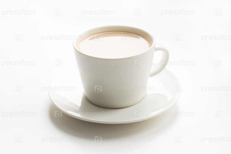 Белая чашка кофе с молоком на белом фоне