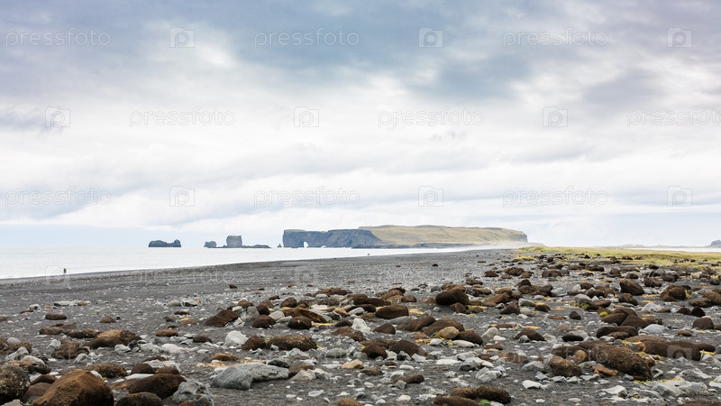 Поверхность Reynisfjara пляж и скалы Дирхолей