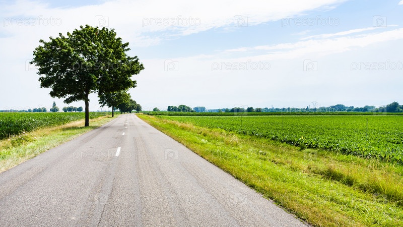 Сельский пейзаж с дорогой в регионе Эльзас