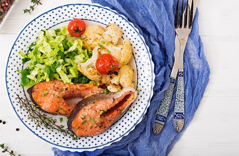 Диетическое меню. Запеченный стейк из лосося