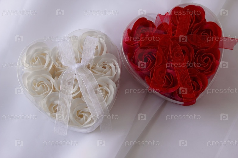 Два сердца с красными и белыми розами