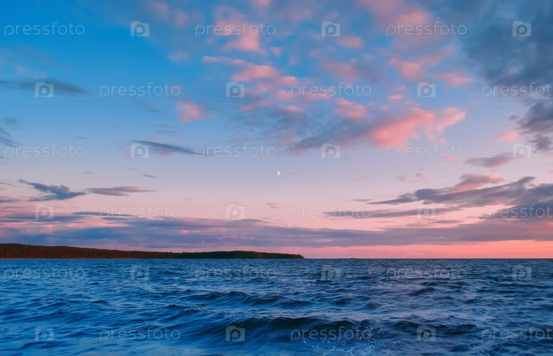 Розовые облака над озером