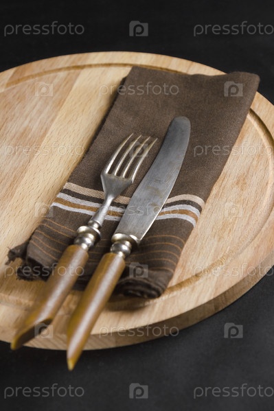 Старые вилки и ножи на разделочной доске