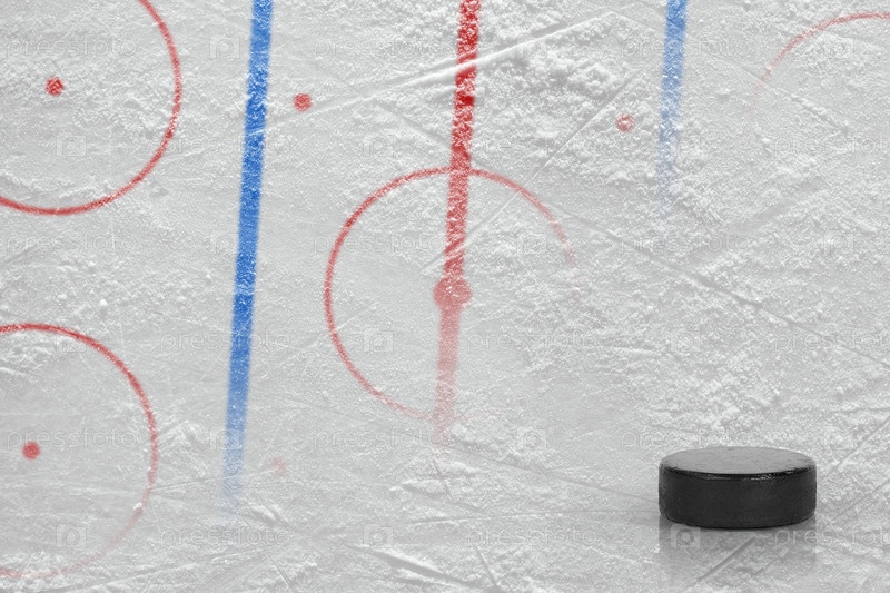 Шайба и фрагмент хоккейной арены с разметкой