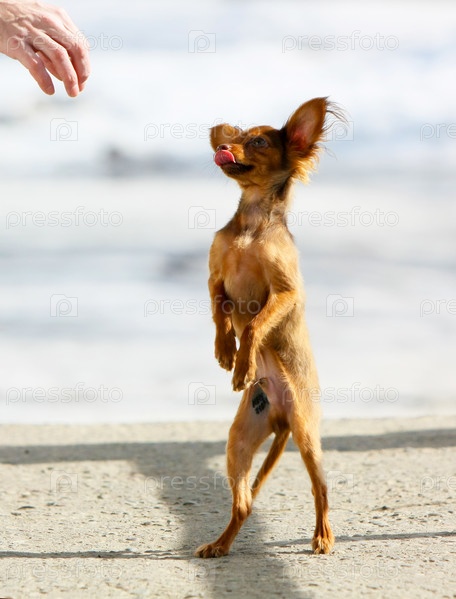 Маленькая собака просит корм