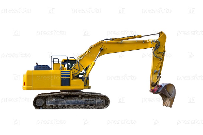 Желтый экскаватор на белом фоне