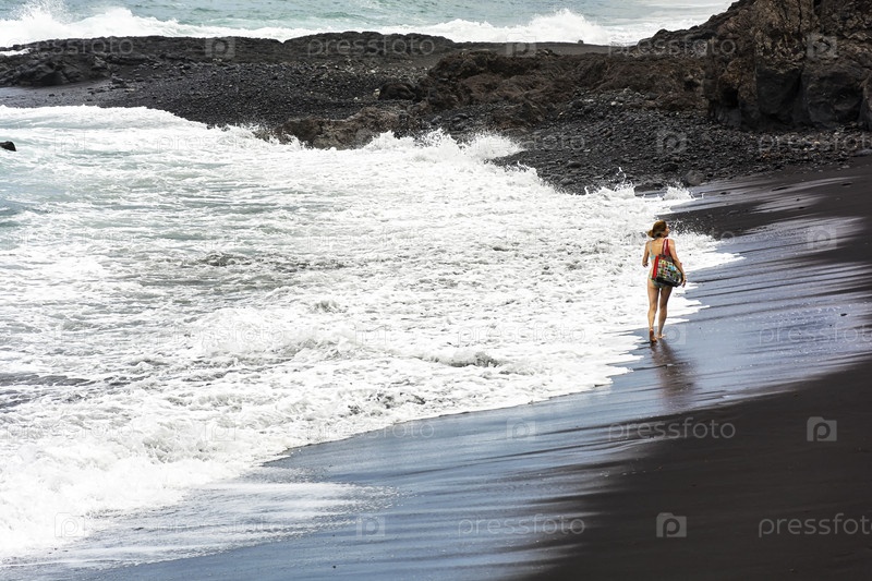 Одинокая женщина в купальнике у океана