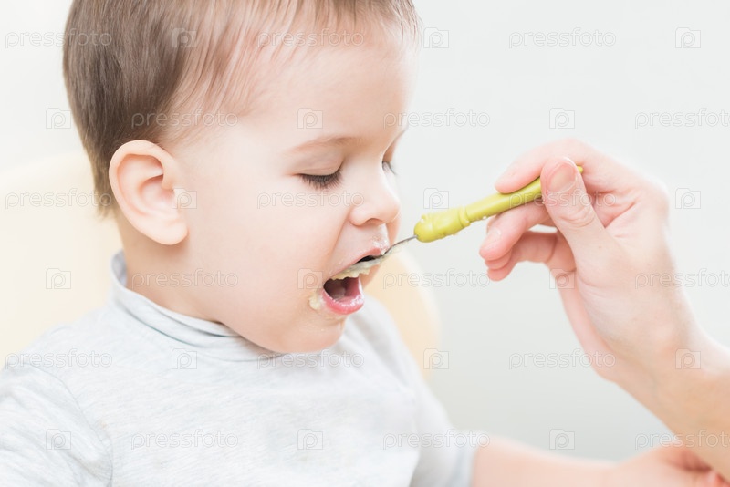 Мама кормит ребенка молочной кашей