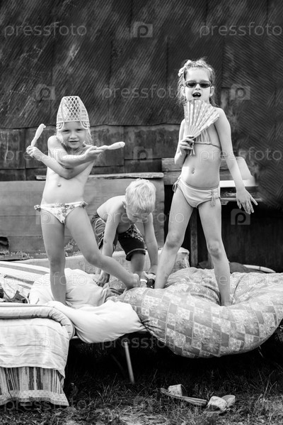 Дети, играющие во дворе дома в деревне
