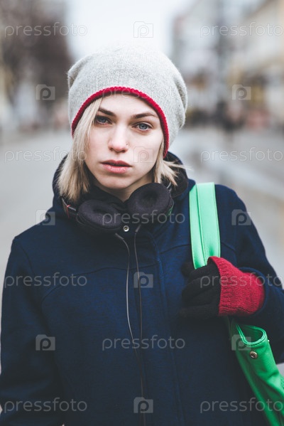 Портрет девушки с наушниками на шее