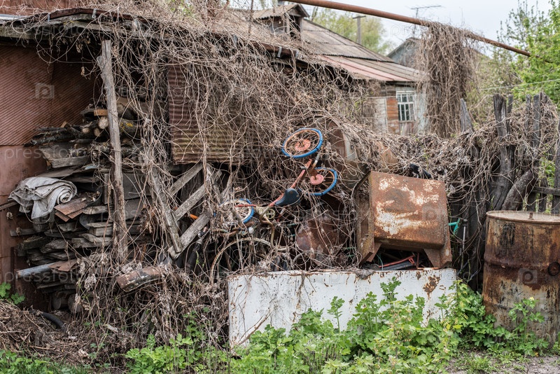 Куча ржавого металлолома в деревне