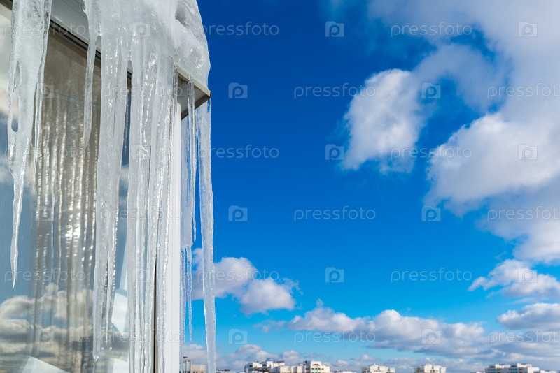 Сосульки висят на балконе дома
