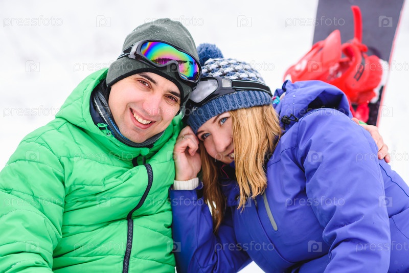 Пара сноубордистов позируют для фотографии