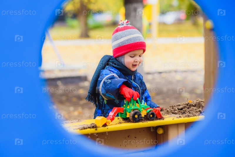 Ребенок играет в песочнице