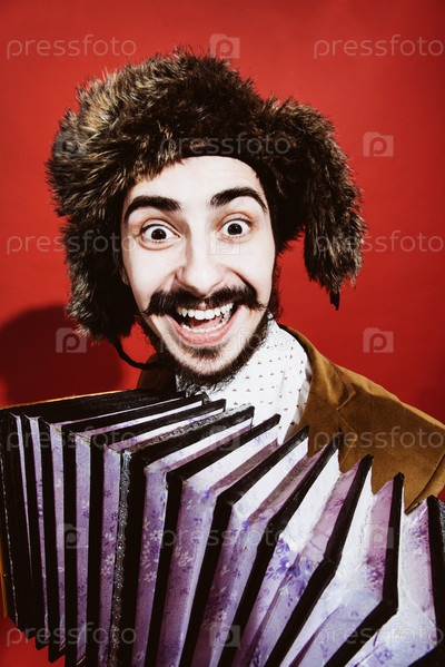 Мужик в ушанке с гармошкой
