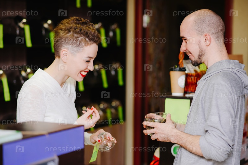 Продавец предлагает понюхать чай