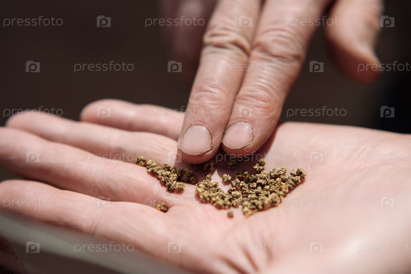 Семена свеклы на ладони пожилого человека