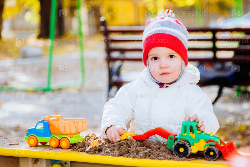 Ребенок играет в песочнице