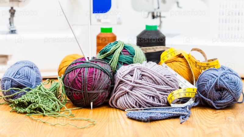 Различные вязальные инструменты и швейные машины