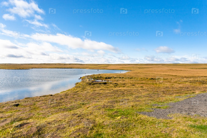 Пейзаж тундры в Исландии в солнечный день сентября