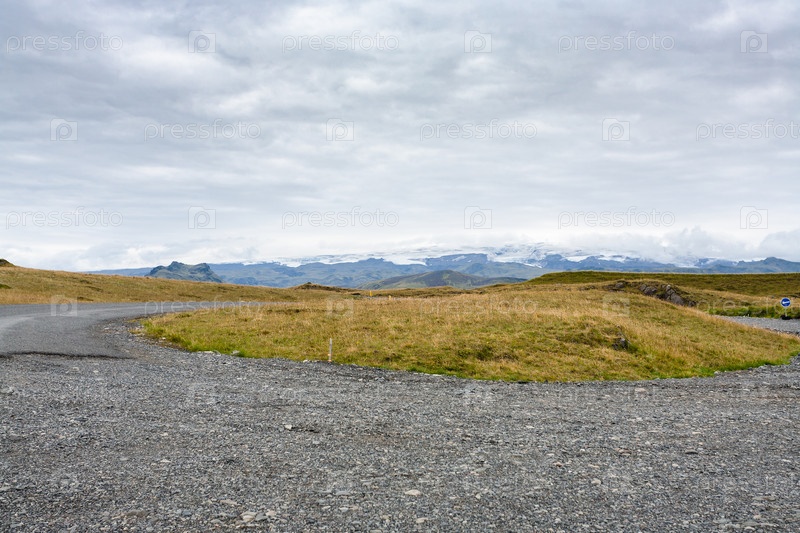 Дорога на полуострове Дирхолей в Исландии